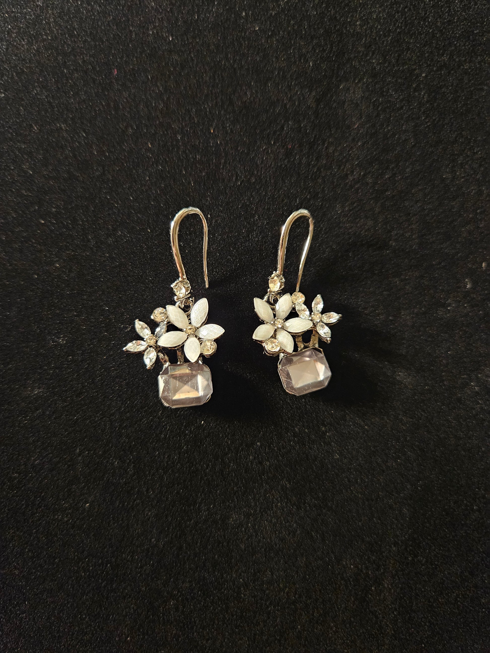 Black Floral Drop Earrings with Artificial Crystal Inlay, Fashion Alloy Dangle Earrings for Women, Ideal Gift for Christmas, 14+ Age Group, Copper Ear Needle - 1 Pair